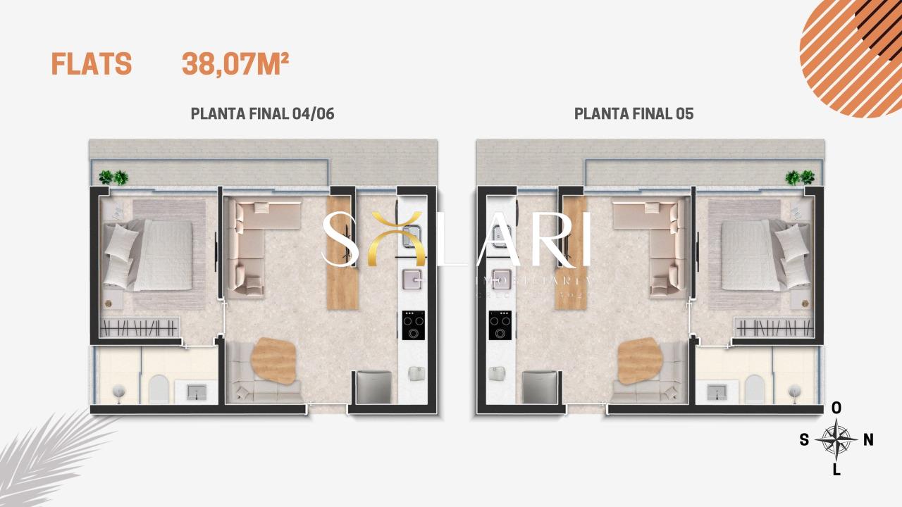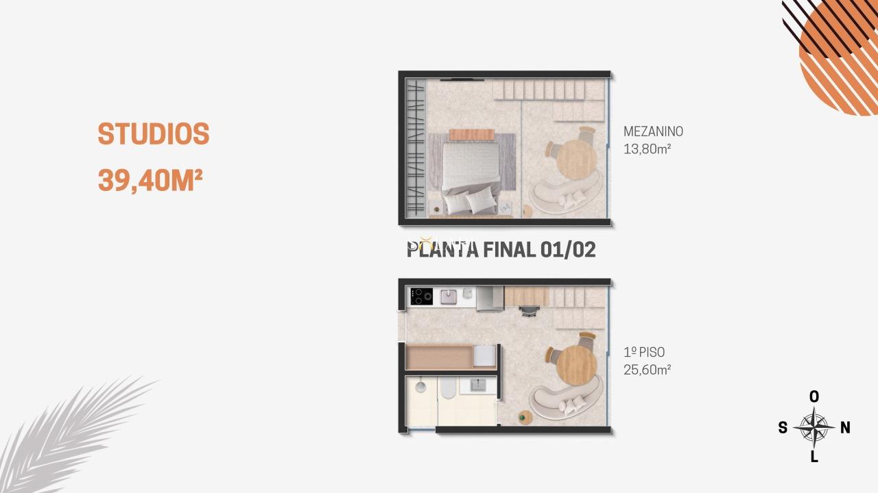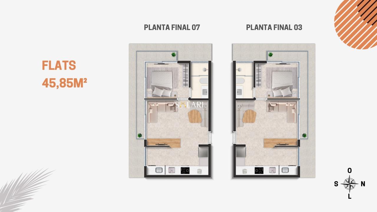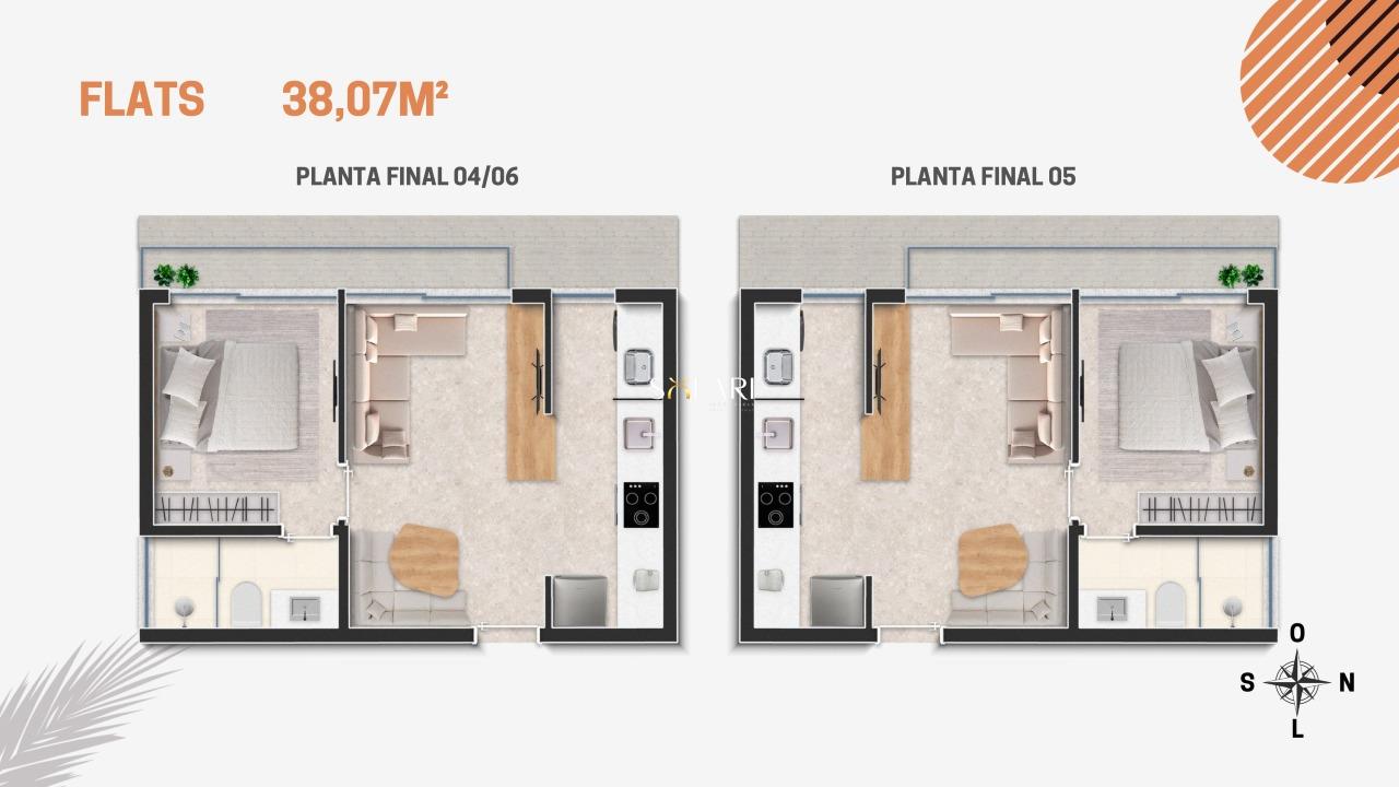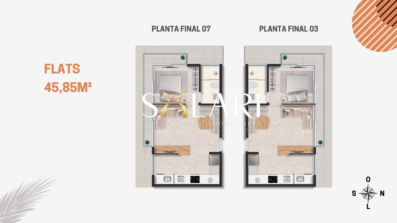 Flats e Lofts de 38 a 45m2, projetados para atender o público mais exigente, que busca conforto e sofisticação, com muitos serviços a poucos passos.